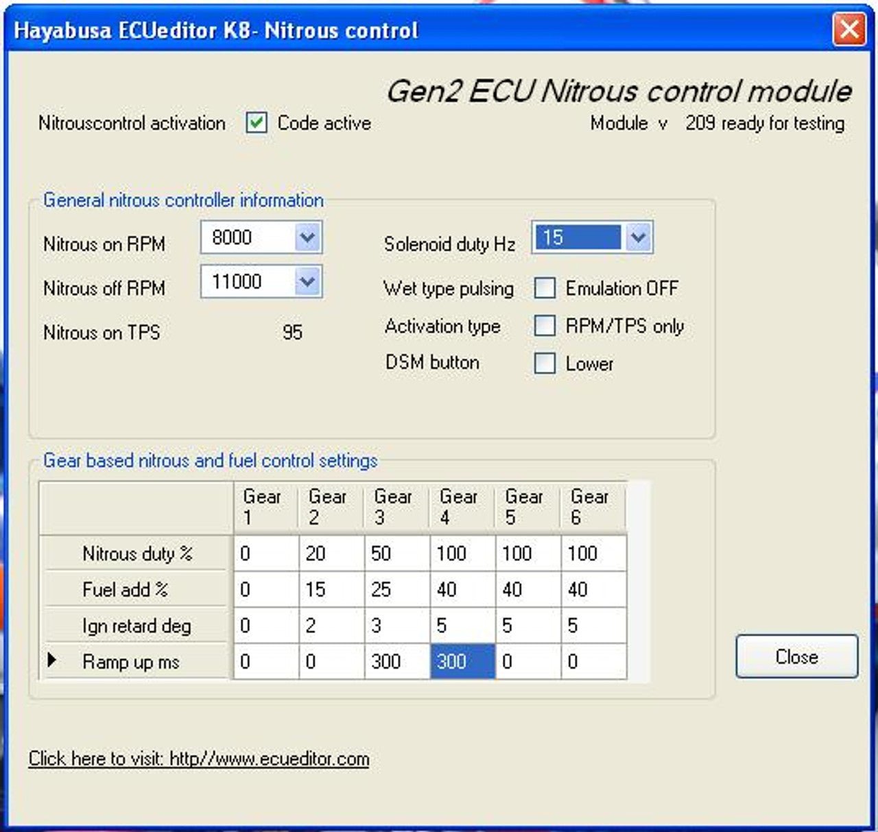 يمكن تعديل معدلات التشغيل لـ NOS والوقود والإشعال أيضًا